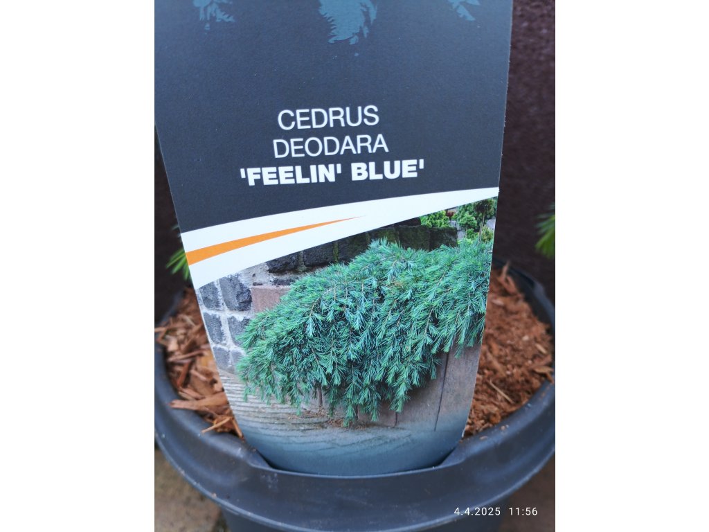 Cedr himálajský Feelin´ Blue je velmi zajímavá a odolná odrůda himálajského cedru, která byla vyšlechtěna původně jako půdopokryvná, na což se dá také využít, v tom případě dosahuje výšky asi 20 cm. Stromky se ale dají dobře vyvazovat k tyčce a můžeme tak dosáhnout zvláštního atraktivně vypadajícího stromku s výškou, kterou potřebujeme. Větve jsou dlouhé a silně převislé, neopadavé jehličí má krásně stříbřitě modrozelenou barvu. Růst je středně rychlý, cca 30 cm za rok. Ideální je slunečné stanoviště, na půdu je nenáročný, jen by měla být propustná, aby hlavně v zimním období nebyly kořeny příliš zamokřené. Mrazuvzdorný do -27°C.