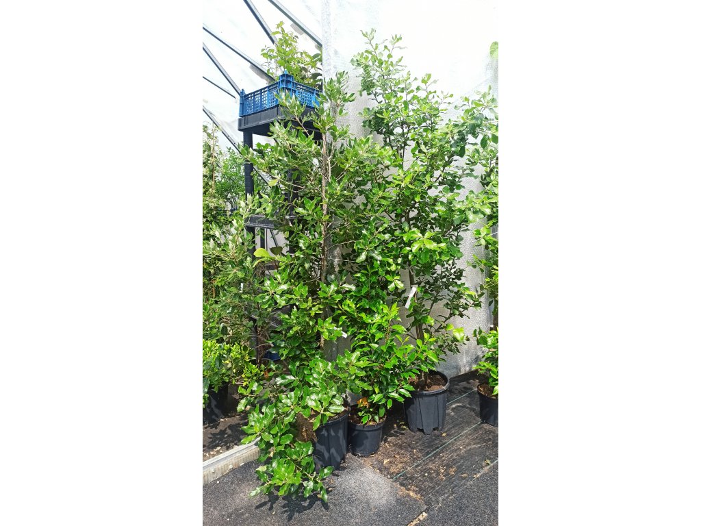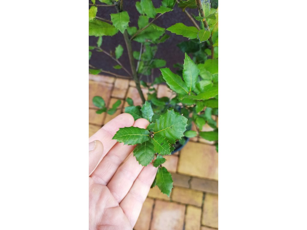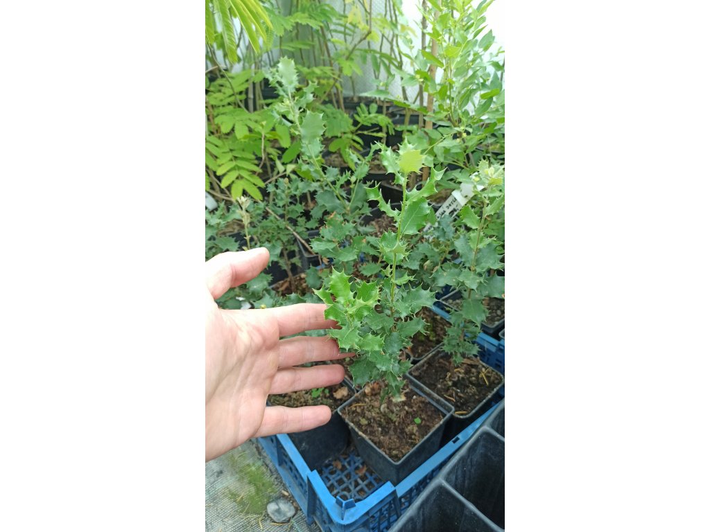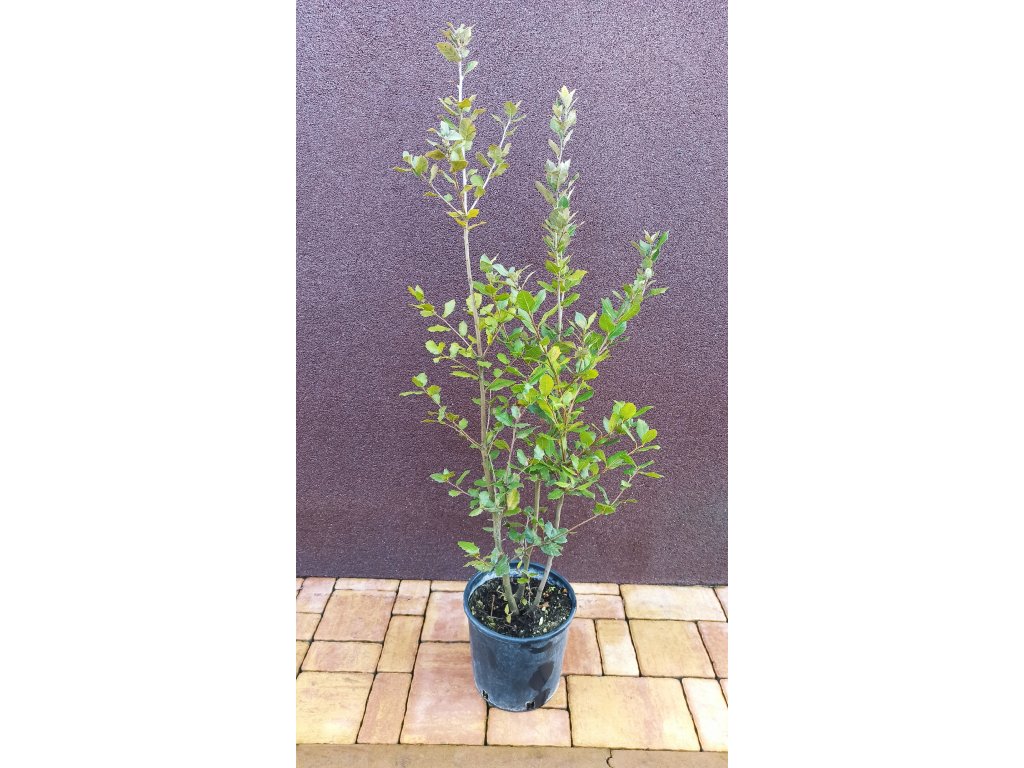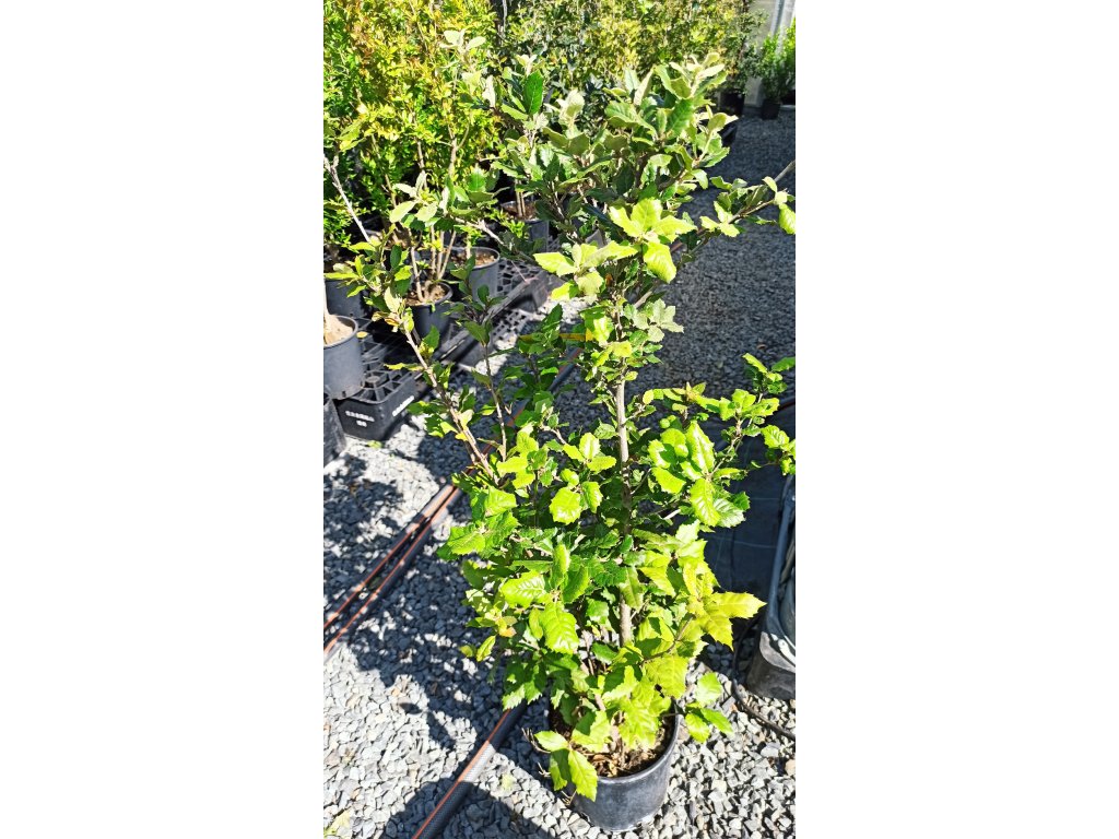 Stálezelený a mrazuvzdorný druh dubu vyskytující se přirozeně ve Středomoří, kde tvoří součást macchie. Je velmi zajímavý svými listy, které jsou téměř k nerozeznání od cesmíny, odtud jeho název. Je překvapivě velmi odolný, snáší bez problémů teploty pod -20°C, uvádí se dokonce až -27°C. Je možné ho tedy pěstovat vysazený na venkovním stanovišti. Potřebuje jen dobře propustný substrát, ve kterém se hlavně přes zimu nebude dlouho držet voda. Ideální je chráněné stanoviště. Pro jeho krásu ho lze pěstovat i v nádobě například na terase se zimním uskladněním do chladného světlého prostoru. Možností je také vytvoření živého plotu. U nás dorůstá do výšky cca 2 metry.