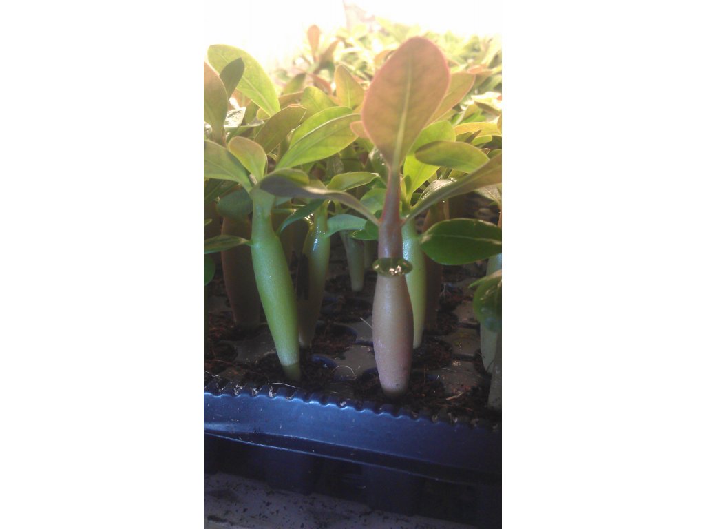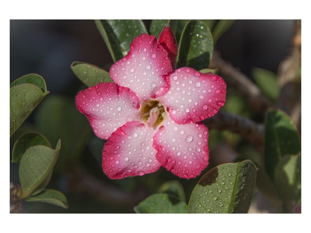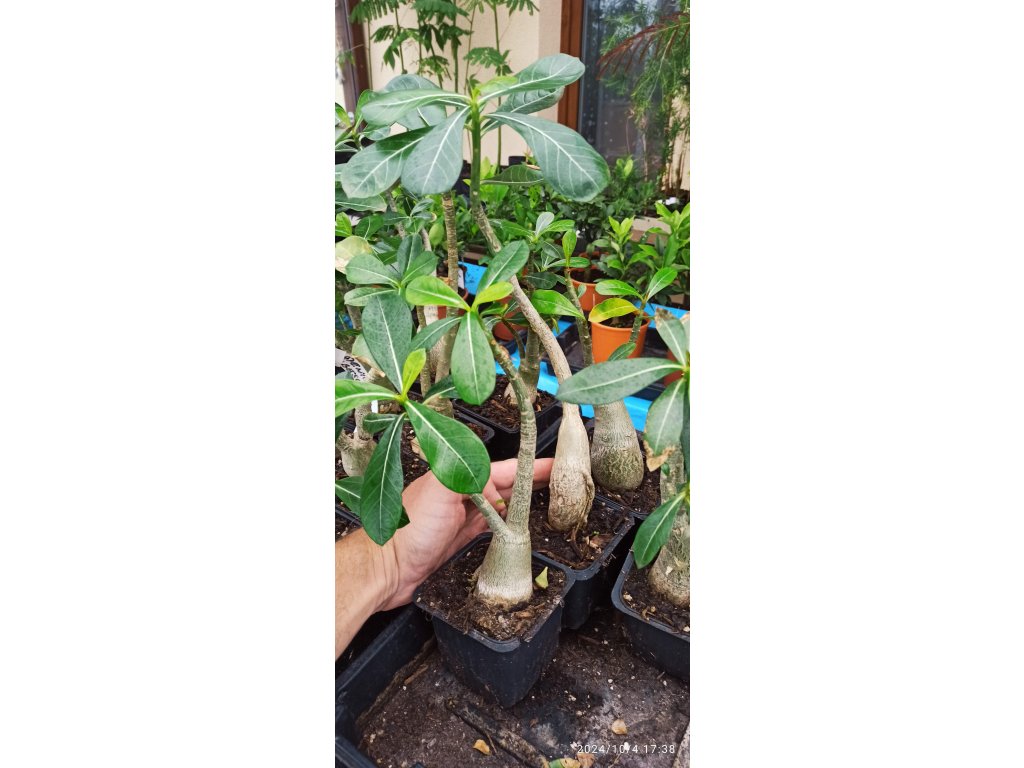 Sukulentní rostlina pocházející původně z Afriky, ale dnes pěstovaná a šlechtěná hlavně v JV Asii, kde vznikla řada různobarevně kvetoucích kultivarů. Pro své nádherné květy, které se ve velkém množství objevují od jara až do podzimu, se jí také přezdívá pouštní růže. Přes léto může být i letněna venku, nemá ale ráda poklesy teplot pod 8°C, možné je to u nás tak pouze v teplejších dnech roku. Rostliny pěstované ze semen tvoří ztloustlý kmínek (kaudex), díky kterému se adenia výborně hodí na tvorbu bonsají. Jejich jedinou nevýhodou je rostlinné mléko (latex), který je jedovatý, při normálním pěstování a manipulaci však nehrozí žádné nebezpečí, podobně jako u oleandrů nebo například venku rostoucích tisů. Pěstování je podobné jako u všech kaktusů a sukulentů - propustný substrát, slunce nebo polostín, pokojová teplota, pokud shodí listy, nezalévat. Přes léto možno zalévat vždy, když je substrát suchý, večer možno rosit. V klasických vytápěných bytech se adeniu daří a dobře kvete. Přes zimu adenia shazují většinu listí, také kaudex se může zcvrknout vlivem ztráty vody v rostlině. Barva květu je předem neurčitelná, jsou pěstovány z mixu různobarevných odrůd. Po přesazení je dobré rostlinu cca 10 dní nezalévat.